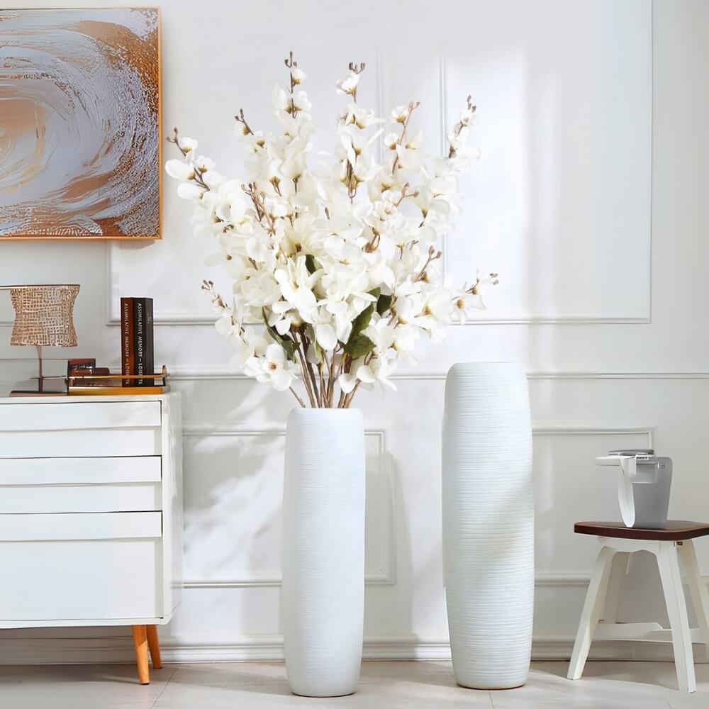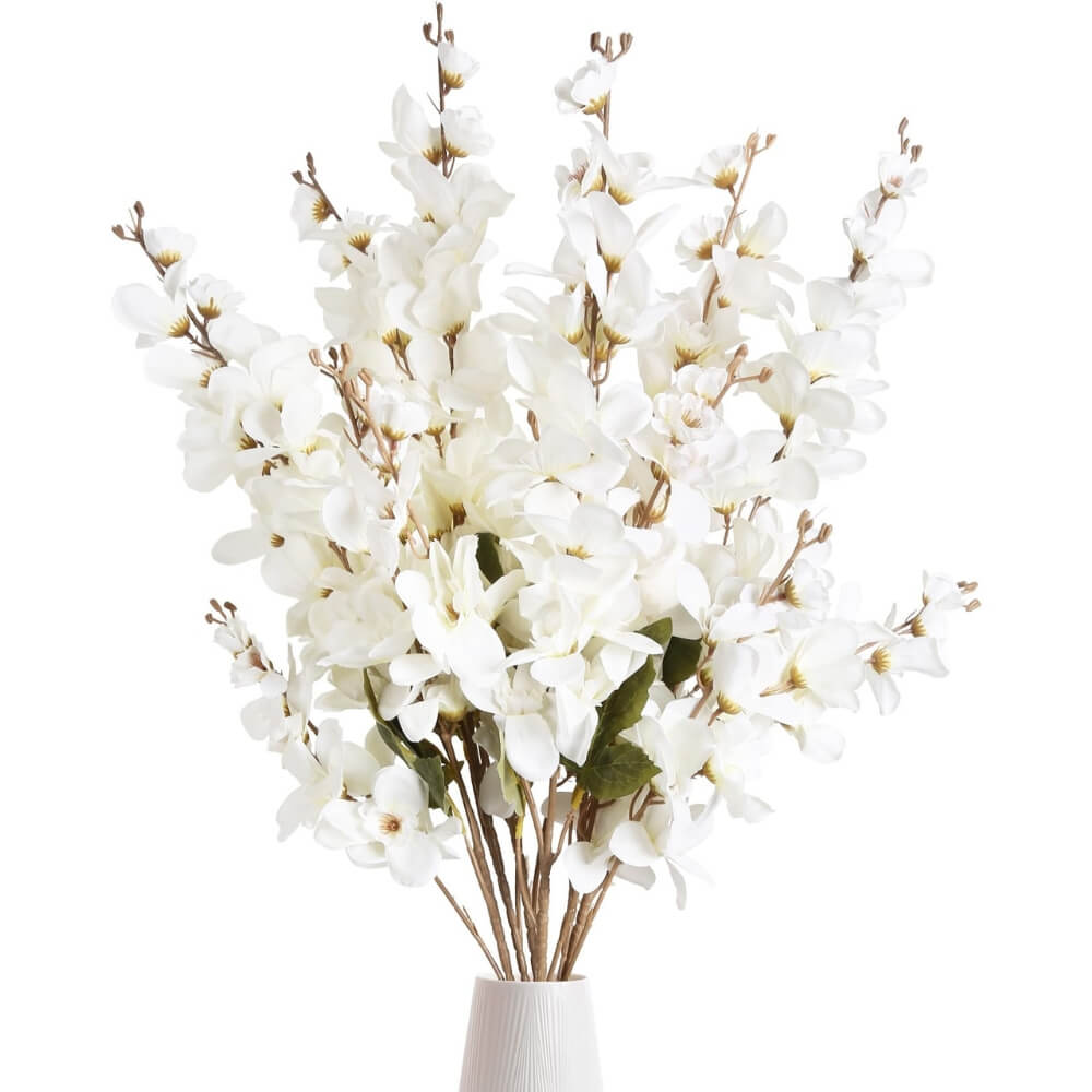 39" Luxury Artificial White Delphinium Silk Flowers (6 PCS)