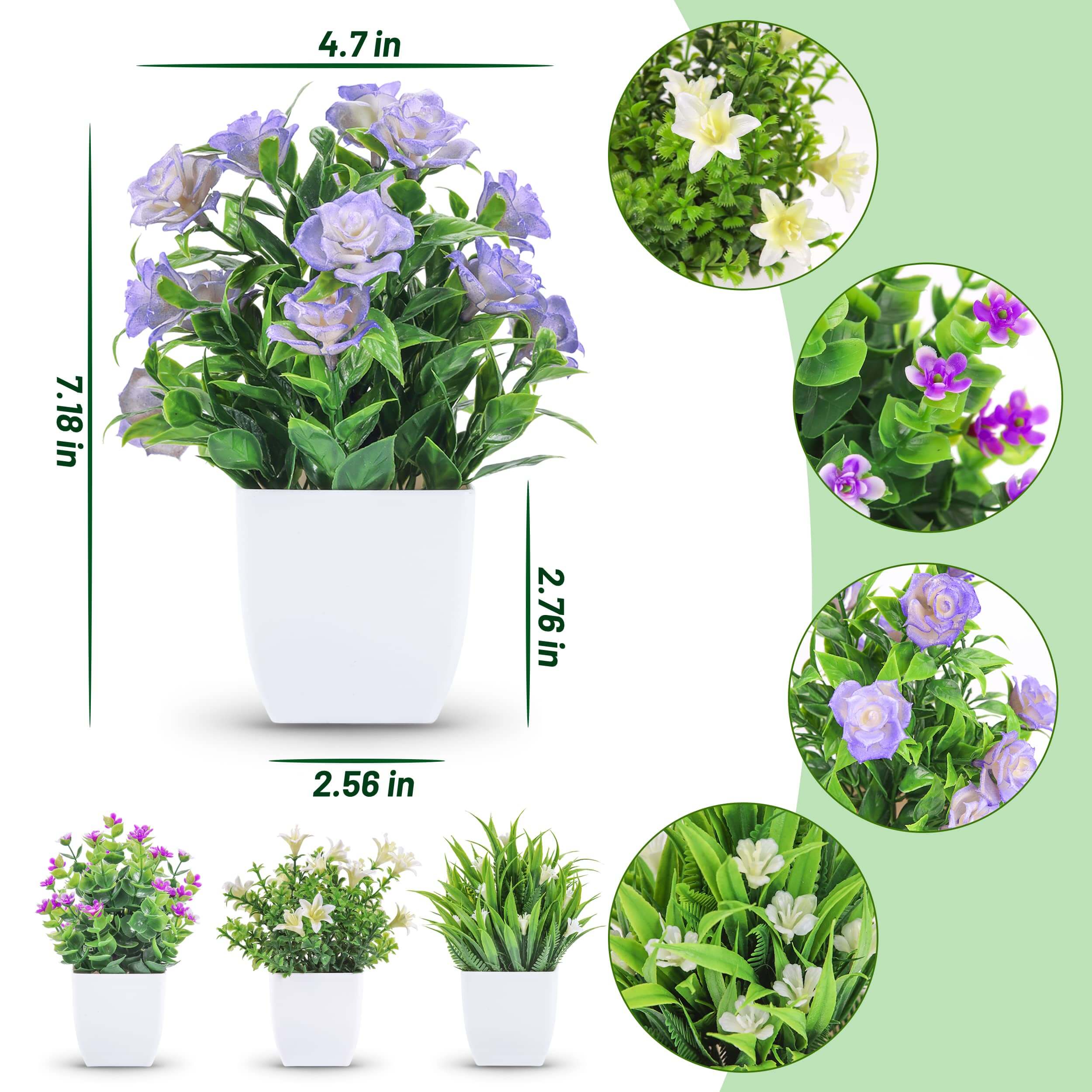 Mini Artificial Plants with Flowers (4 Packs)