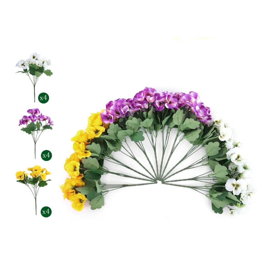 12.6" Premium UV-Resistant Artificial Silk Pansies (12 PCS)