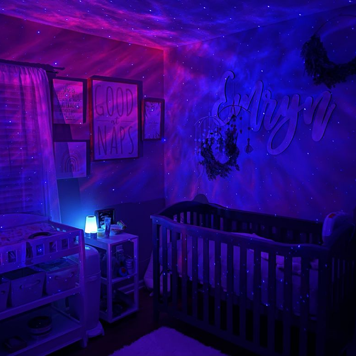 The starry projector lamp can be used in bedrooms, game rooms, home theaters, and living rooms to provide a peaceful and relaxing atmosphere for dates, games, movies, and parties or as a night light.