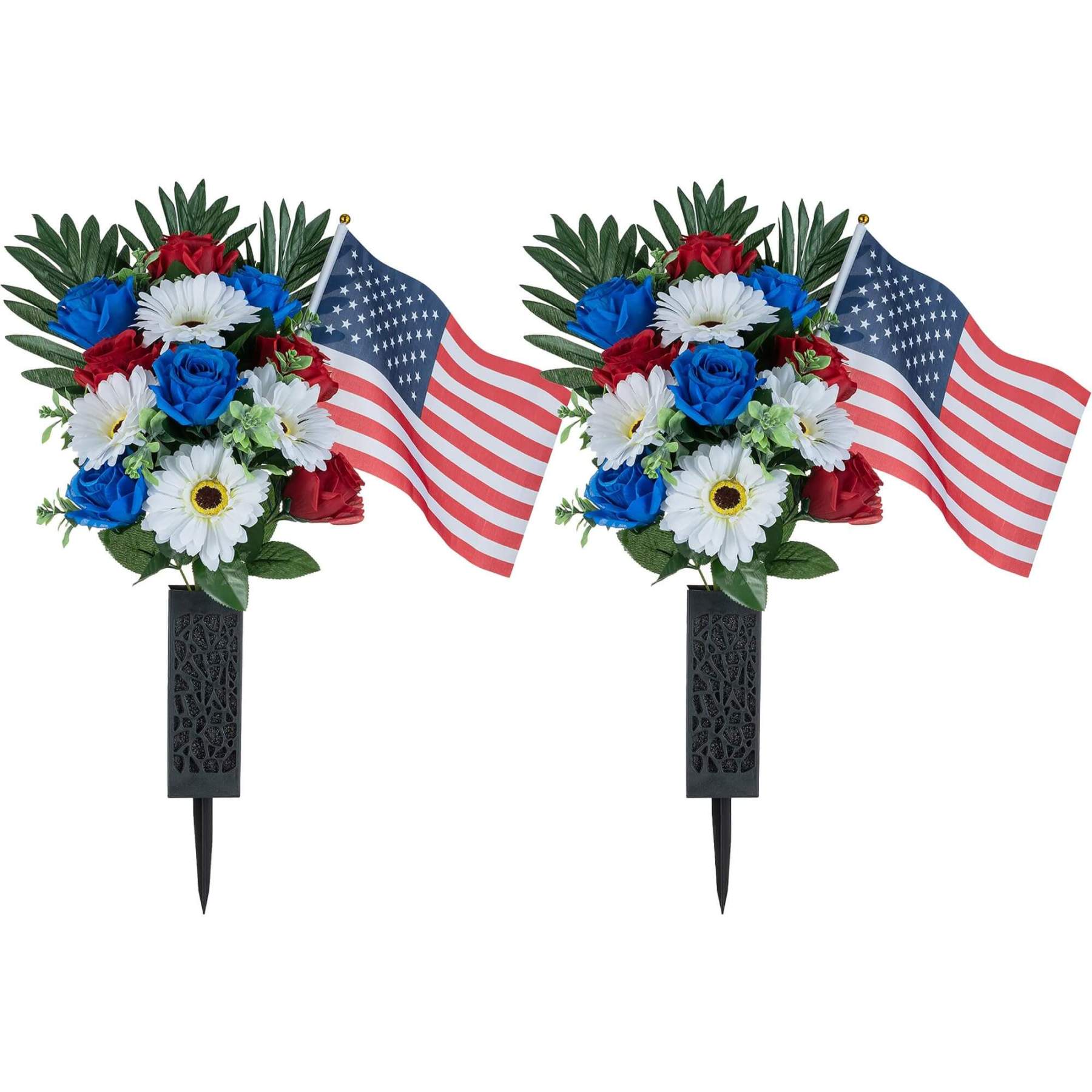 21.6" 4th of July Deluxe Patriotic Memorial Artificial Flower Set (2 Packs)