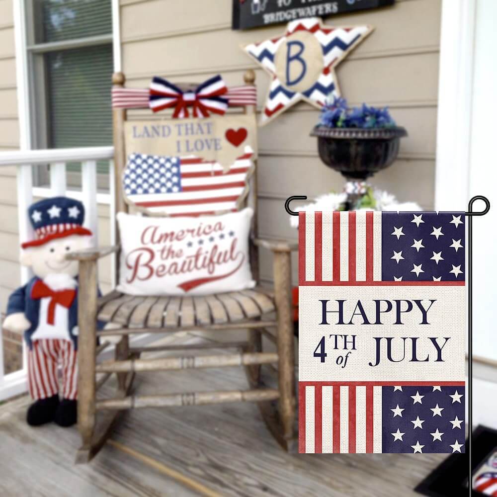 4th of July Luxury Patriotic Burlap Garden Flag (2 PCS)