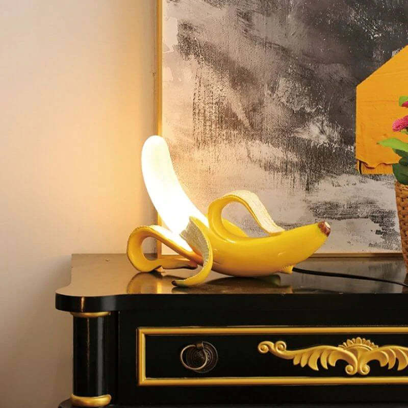 🍌A saucy little table light featuring the skin peeled back for support and for the light to shine through the banana fruit inside. Transform your living space with this unique banana lamp.