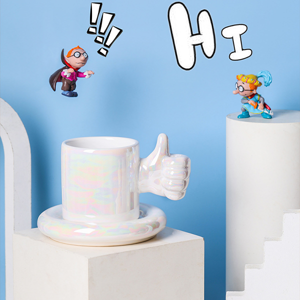 Creative Personality Handle Ceramic Cup Coffee Cup Saucer-Fun Creative Thumbs Like Cup Saucer Mug