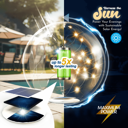 Enjoy seamless lighting with automatic solar-powered functionality. These glow balls absorb sunlight during the day and illuminate your outdoor space at night, creating a breathtaking visual experience with zero effort. With just 8 hours of daylight, these durable LED lights provide up to 8 hours of enchanting brilliance, ensuring your pool, patio, or garden shines effortlessly every evening.