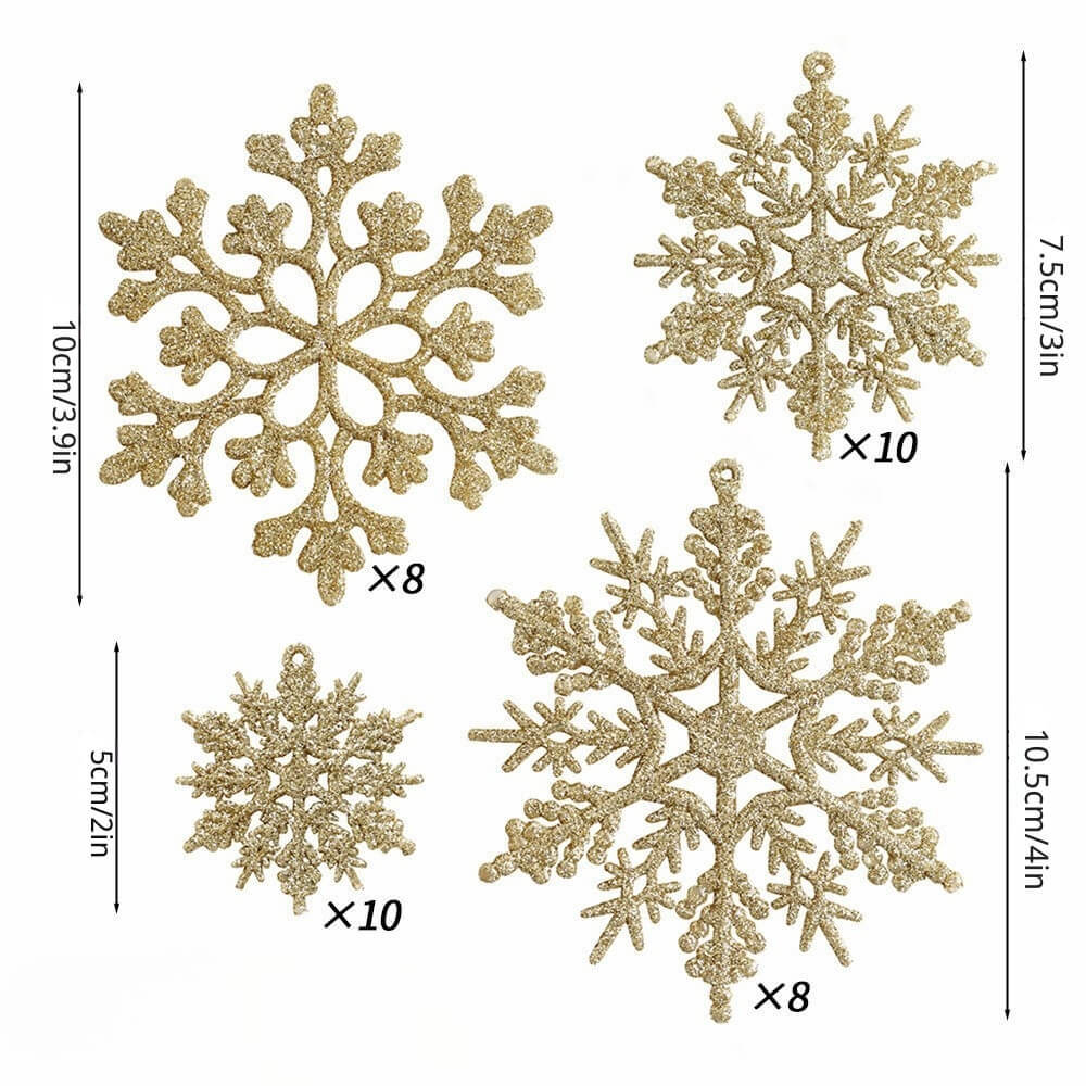 Gold Glitter Snowflake Ornament Set (36 PCS)