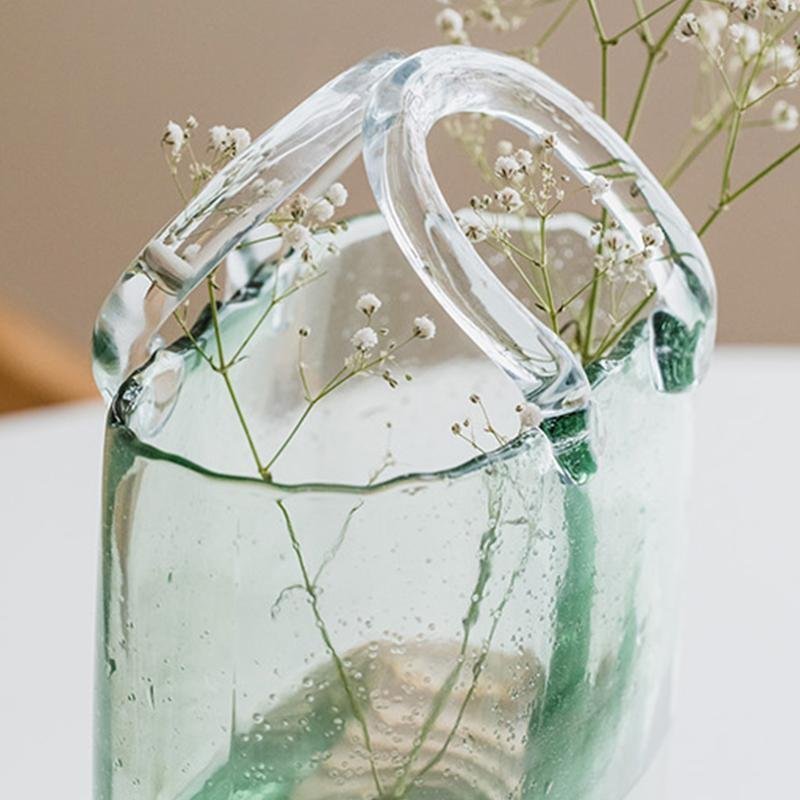 Basket Shaped Green Glass Vases Rose Flower Vases