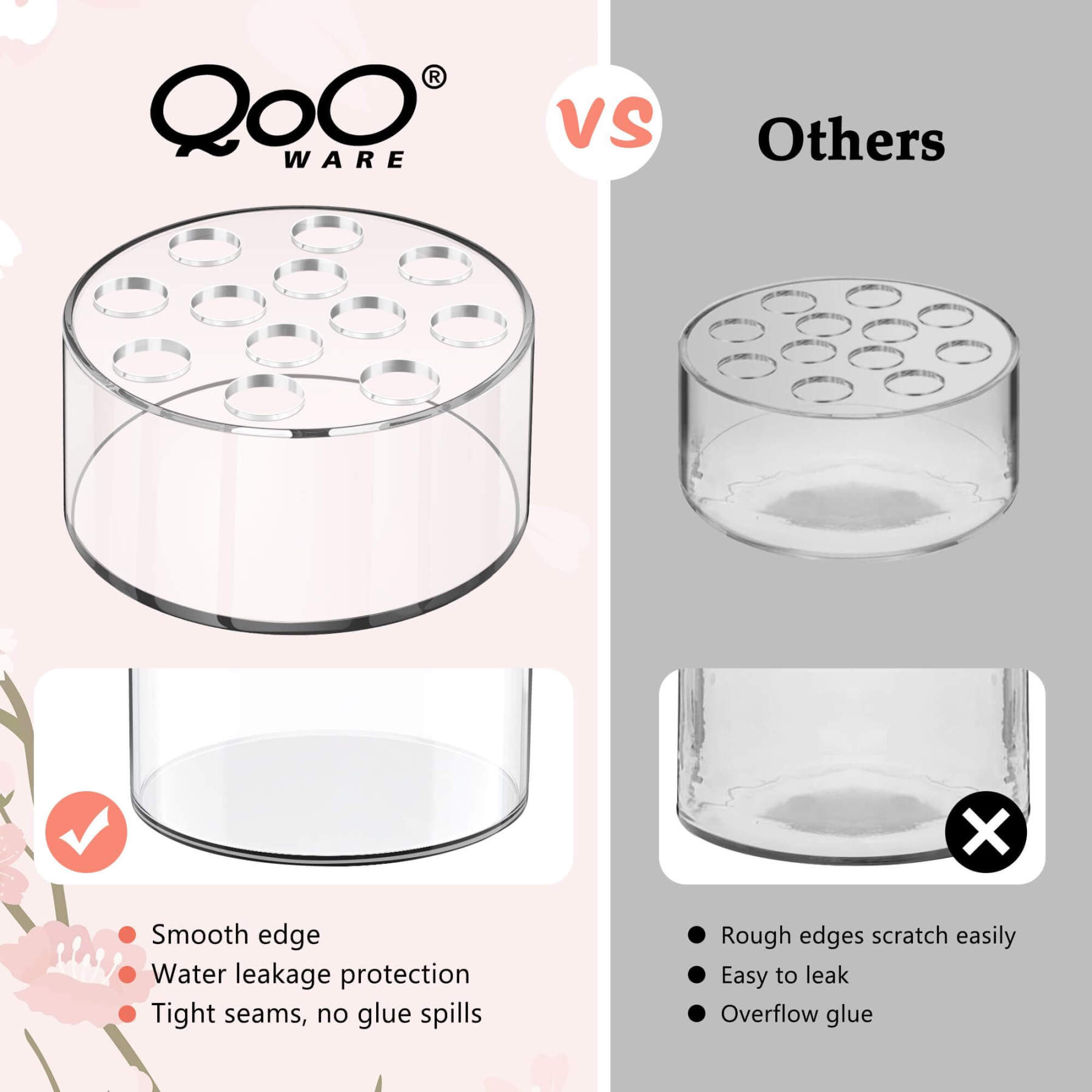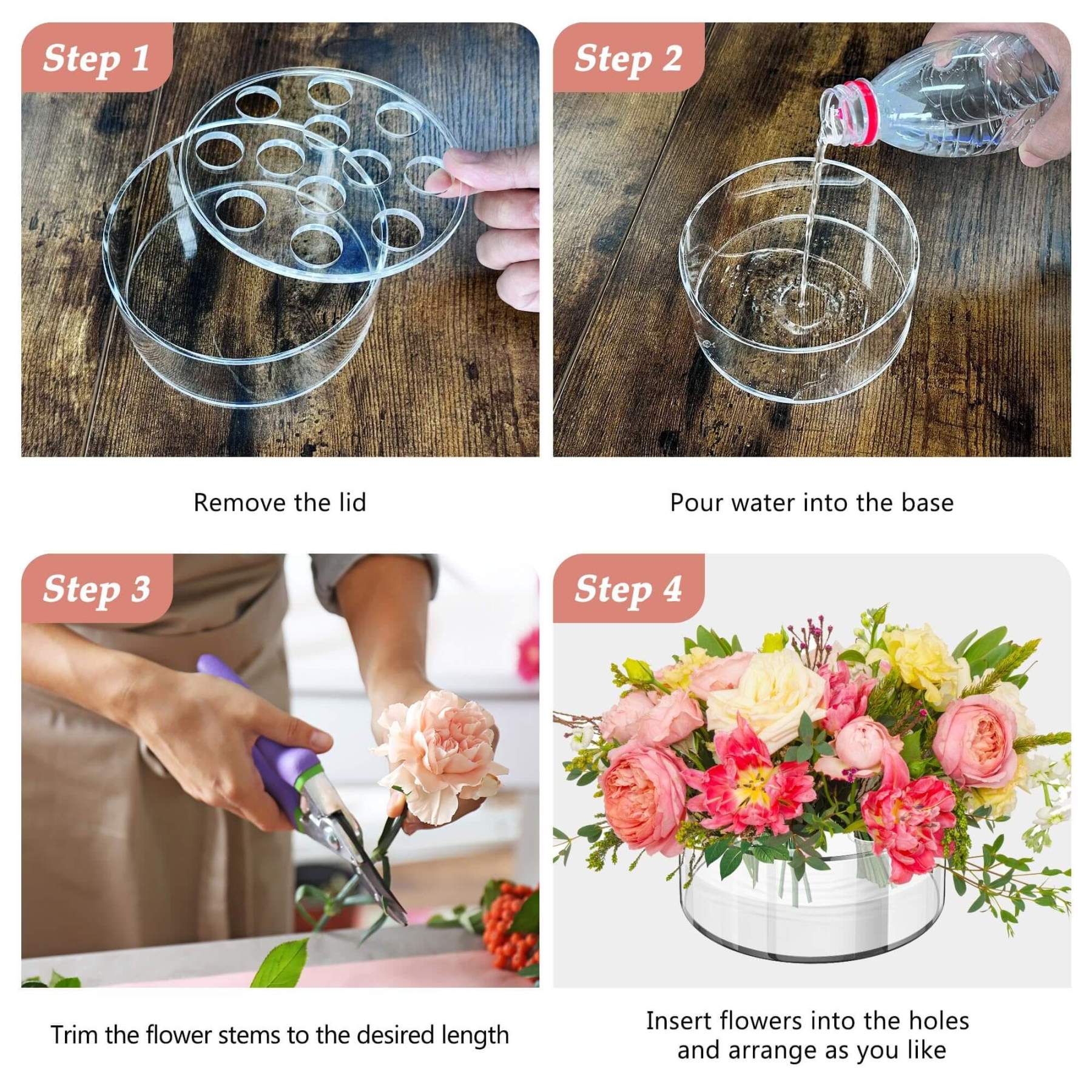 Keep blooms perfectly spaced with the 12-hole grid top while the leak-proof base protects surfaces—ensuring clean, balanced floral designs every time.