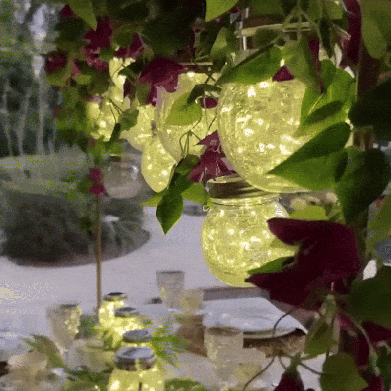 Enhance your outdoor ambiance with these Luxury Crack Glass Solar Lanterns. Featuring 20 warm LED firefly lights, they create a romantic, starry glow that elevates patios, porches, and garden paths.