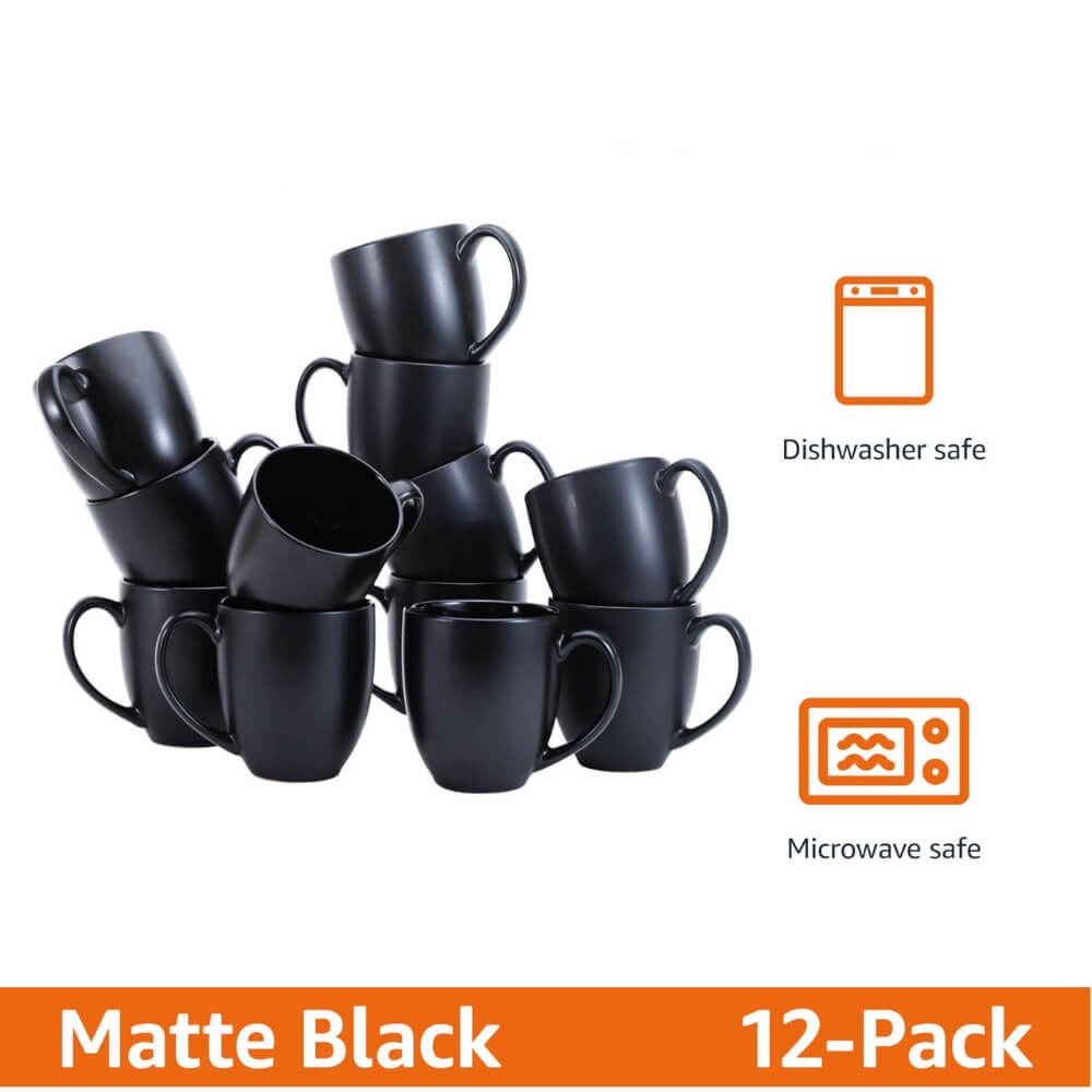 Matte Black Ceramic Coffee Mug (Set of 12)