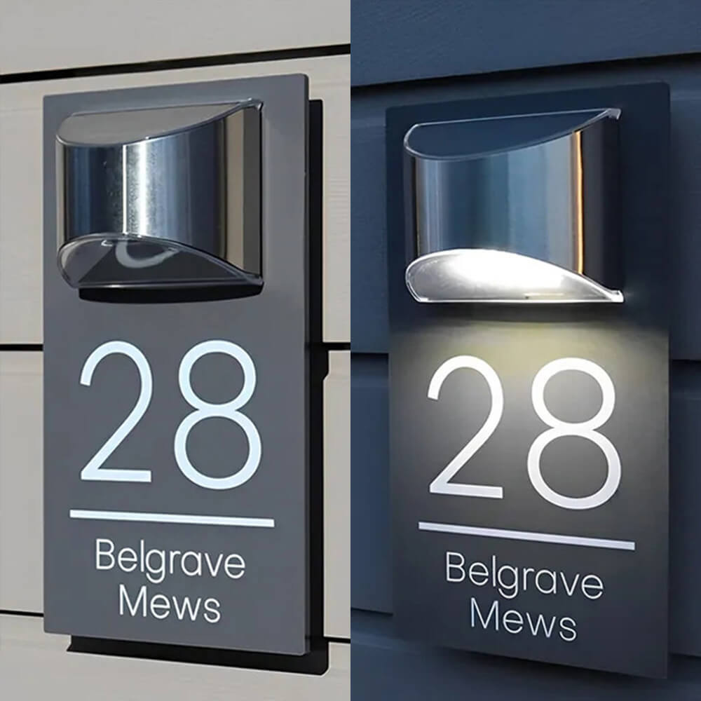 Transform your home entrance with our Personalized Solar Modern Door Plaque. Featuring a concealed bracket fixture, these signs create a stunning floating effect, enhancing the aesthetic of any wall. Customize with your house number and street name for a unique, personal touch that makes your home stand out.