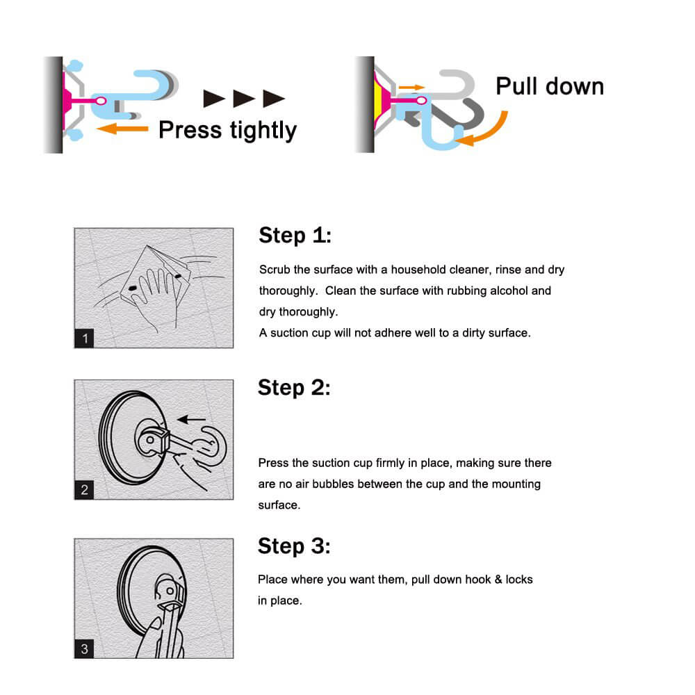 Installing the strong vacuum suction cup hook is a breeze. Just clean and dry the surface to be installed, press the suction cup firmly, and you're done. The powerful vacuum suction ensures a secure grip without leaving any marks or residue.