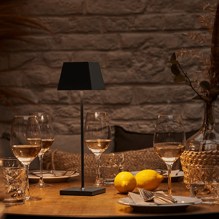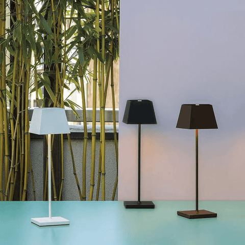 Portable and rechargeable. Ideal for outdoor environments, it is also excellent for indoor use. Thanks to the comfortable and modular light emission, perfect for the dining table or the conversation corner in the home and the restaurant world.