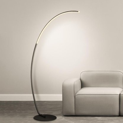 Arc floor lamps have long been a traditional element of living room furniture. This slim aluminum floor lamp simultaneously subverts and celebrates that tradition with an unobtrusive yet compelling style.