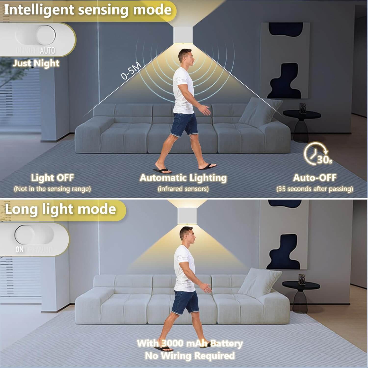 Mount it in seconds with the strong magnetic base—no drilling or wiring needed. It offers flexible placement anywhere, ideal for hallways, bedrooms, staircases, and more.