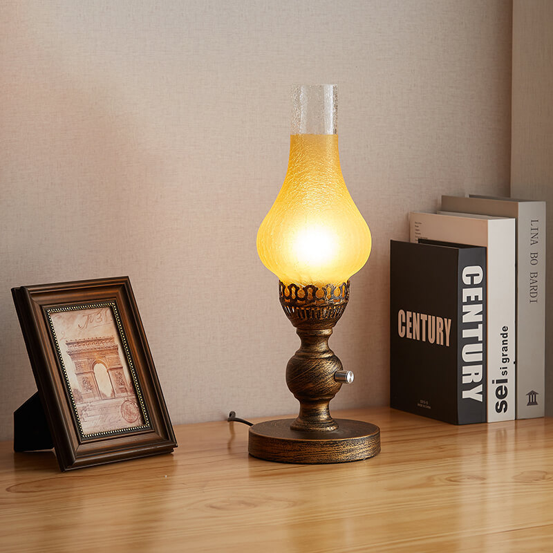 Step back in time with the Retro Crackled Glass Kerosene Lamp, a modern tribute to the classic kerosene lamps. Its vintage design blends seamlessly into contemporary spaces, offering a nostalgic touch without compromising modern functionality.
