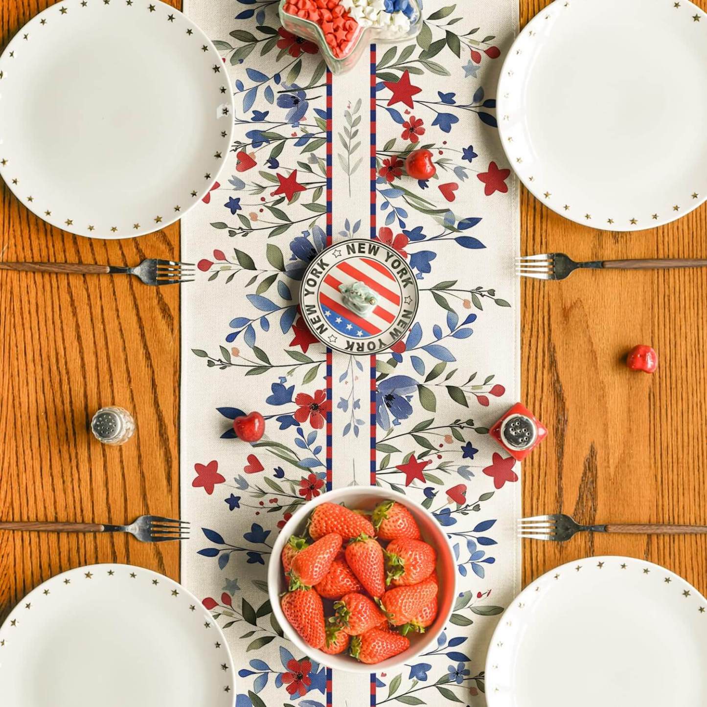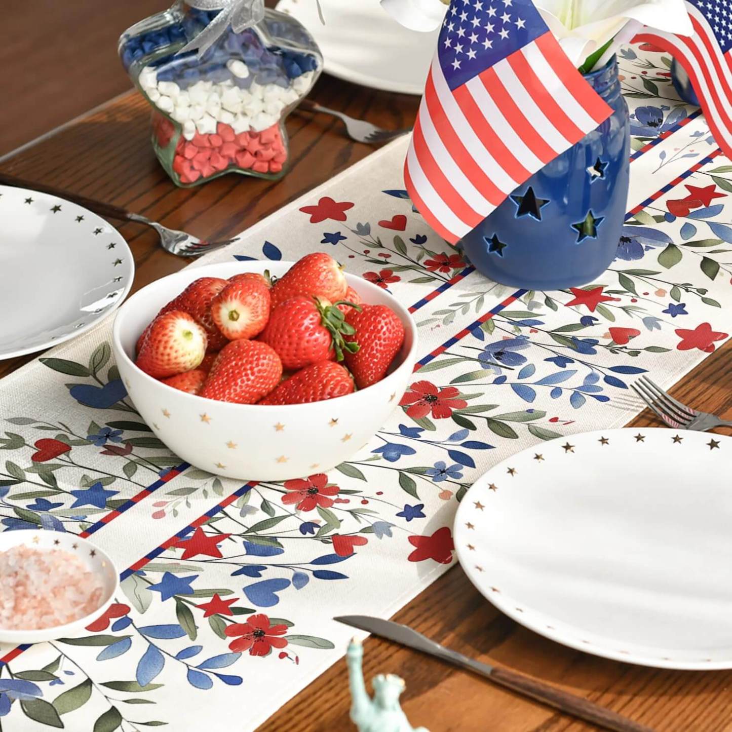4th of July Luxury Eucalyptus Floral Stars Table Runner(4 PCS)